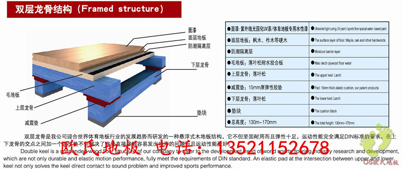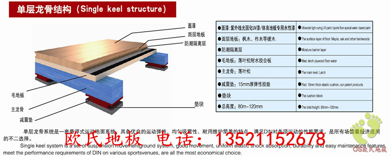 1、龍骨結構:此結構的體育木地板,結構簡單,安裝方便,成本相對較低。主要用于舞蹈室、舞臺、羽毛球室、乒乓球室。