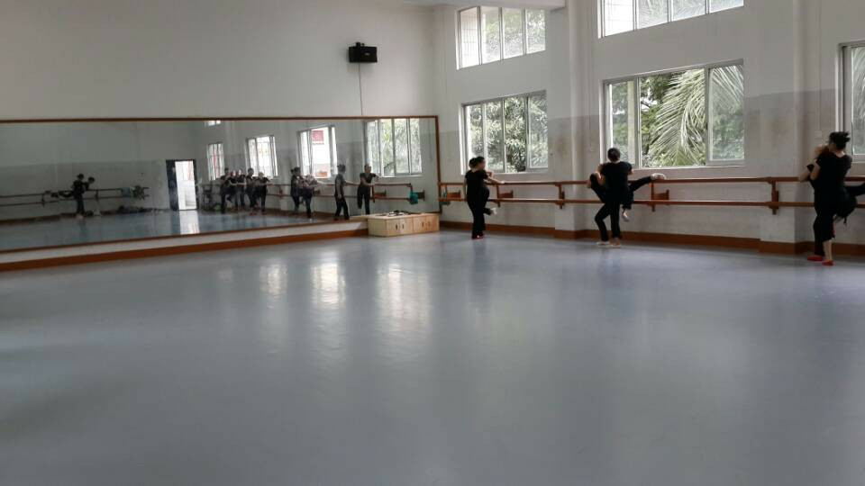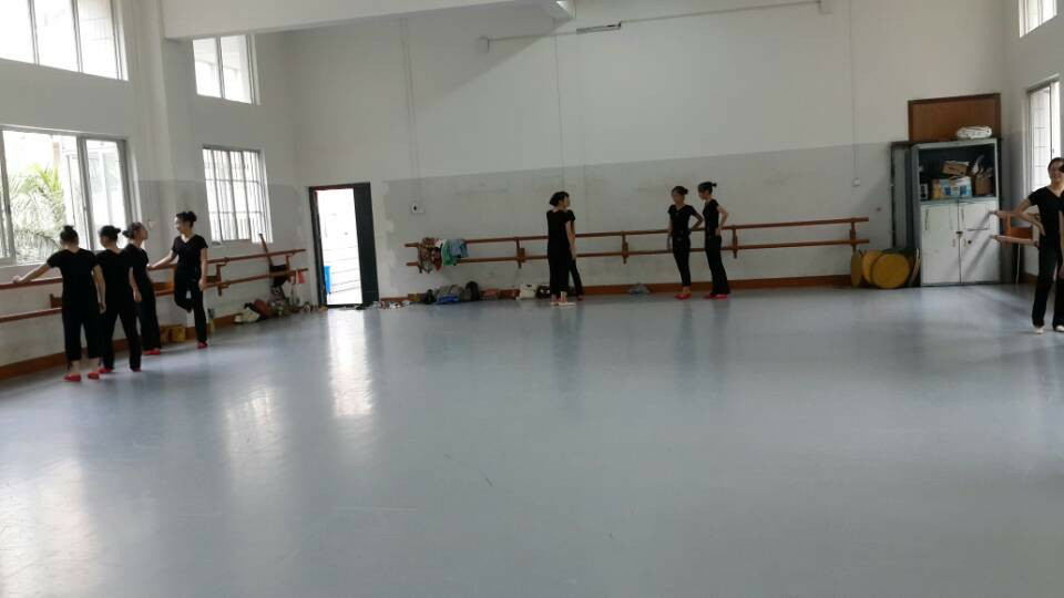 歐氏地板承建廣西師范學院舞蹈室地膠鋪設(shè),采用淺灰色舞蹈舞慕系列地膠